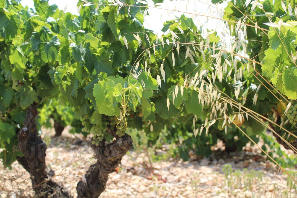 Pour les blancs, le domaine a la particularité de produire les 6 cépages de l’appellation: le Grenache blanc, la Roussanne, la Marsanne, le Bourboulenc, la Clairette et le Viognier.