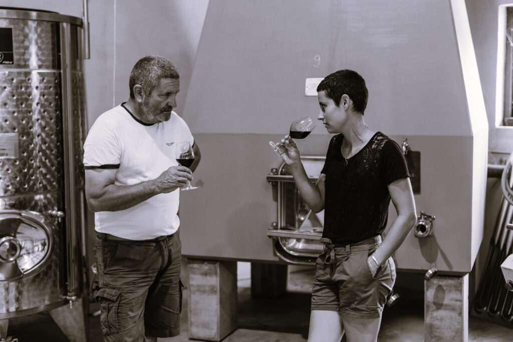 Pour Marie, il ne reste plus qu’à magnifier la récolte en cave. La flore indigène du raisin comme les levures et les bactéries opèrent seule les fermentations. Notre règle d’or est le suivi régulier des cuves en cours de fermentation et d’élevage. On pratique des extractions douces afin que le cépage et le terroir s’expriment au mieux dans nos vins et d’offrir des vins fins et digestes au caractère du Vacqueyras.
